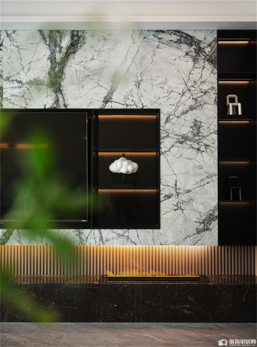 温润墙面的木作,天然石材桌面肌理感搭配,营造轻松自然的空间感受。