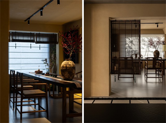 业主住在这栋多层商品房的楼上,希望将楼下一层做成具有自住和接待亲友休闲居住性质的茶空间。故而在这依山傍海的居民楼中,我们探索打造一间古朴且时尚、自然又现代、宁静和包容,具有可游可居的田园雅趣的私家休闲茶室。