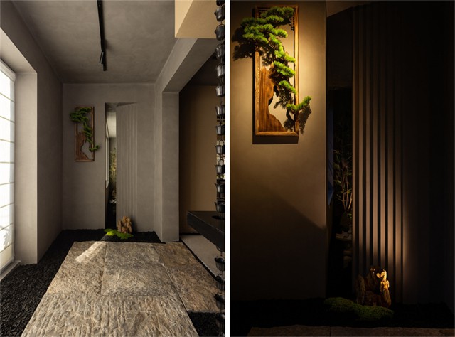 材料上,我们以传统、自然以及有时间质感的木材、自然石、旧砖瓦、仿古铜不锈钢、棉麻等为主,现代感材料为辅,以此引发古朴、自然和宁静的直观感受。