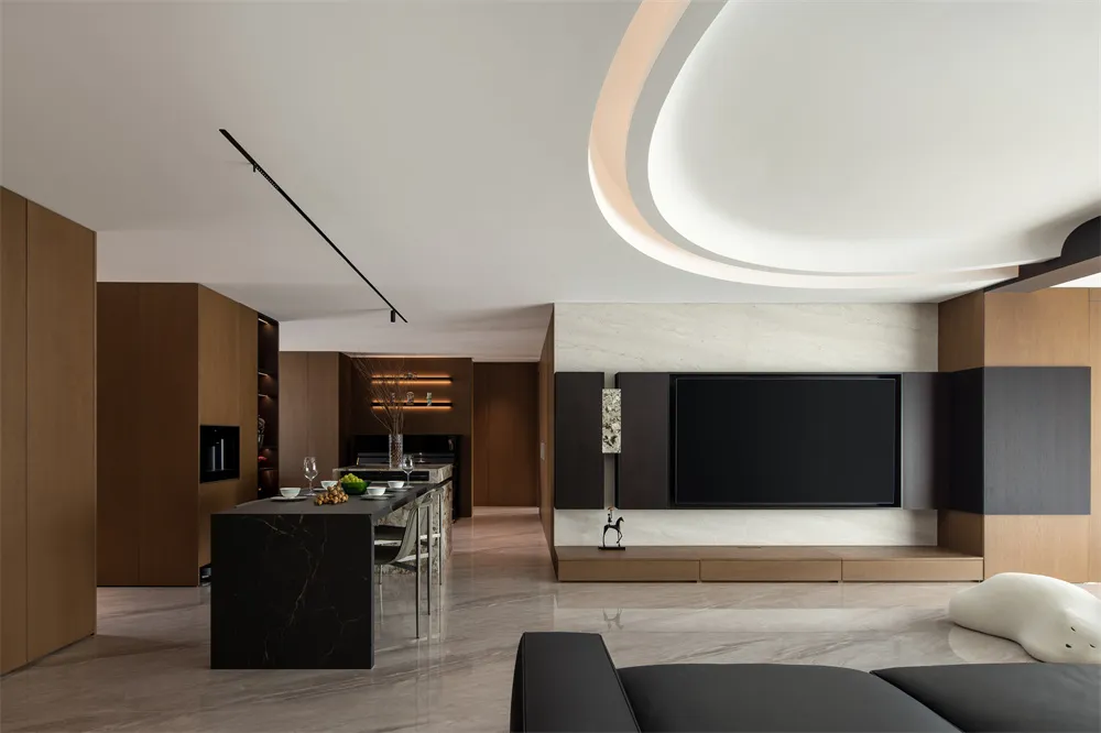 空间主体采用深色木饰面与天然石材,通过温润与冷峻的材质碰撞,建立视觉层次。整体色调以温暖的大地色系为主,点缀以明亮的色彩元素,让空间既不失庄重又充满 ...